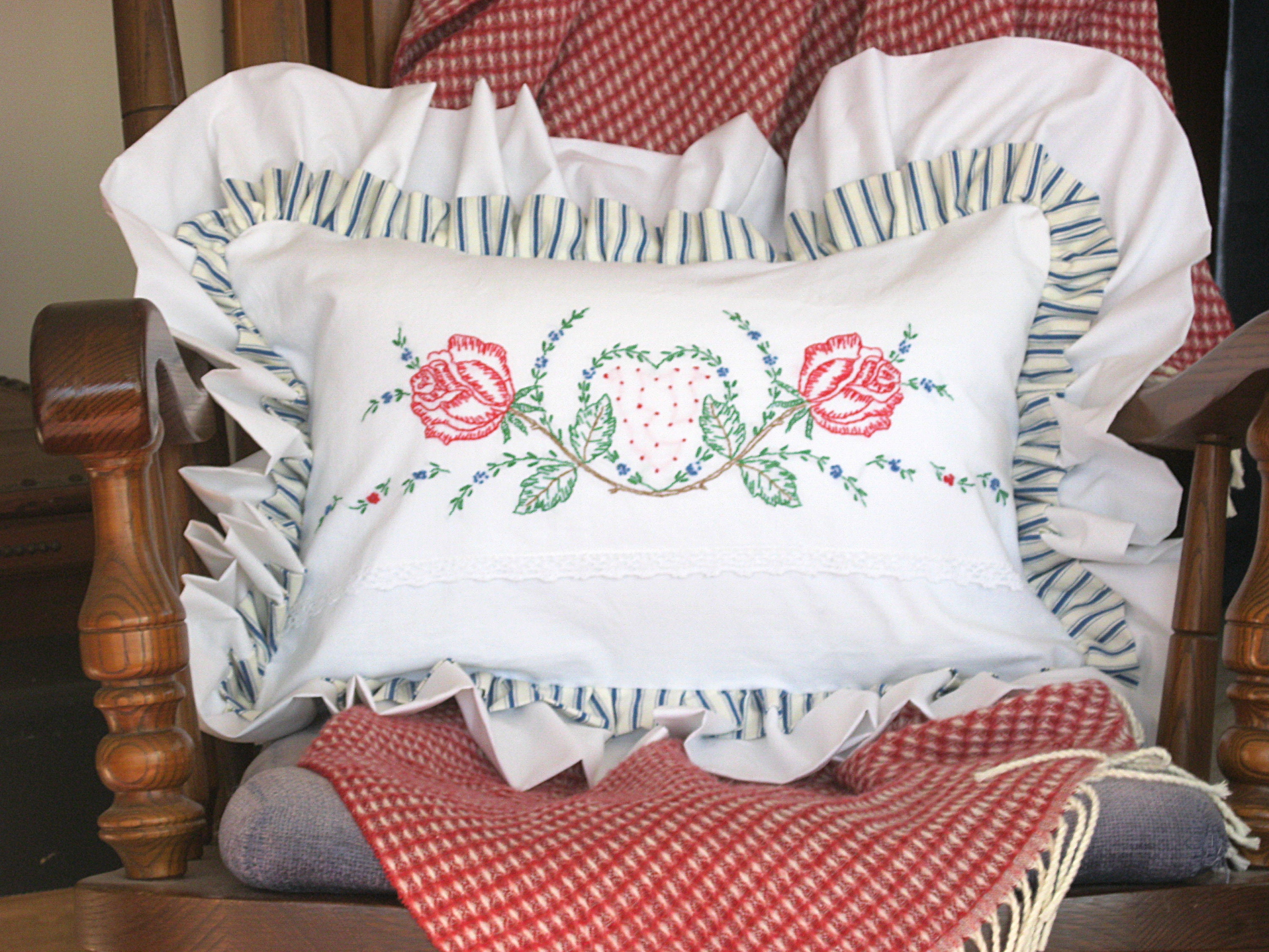 Red Roses With Heart Lumbar Pillow Case Vintage Linen Etsy
